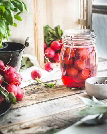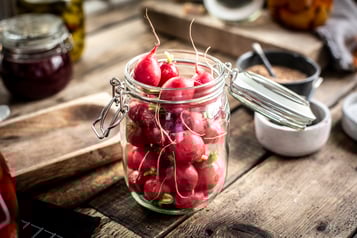 Radieschen bestechen durch ihre intensive Farbe und ihren fast scharfen Geschmack. In der Pickled Version tun Himbeeressig, Zucker und Fenchelsaat ihr übriges, den kleinen runden Knollen zu wahrer Größe zu verhelfen. Ab ins Glas damit!